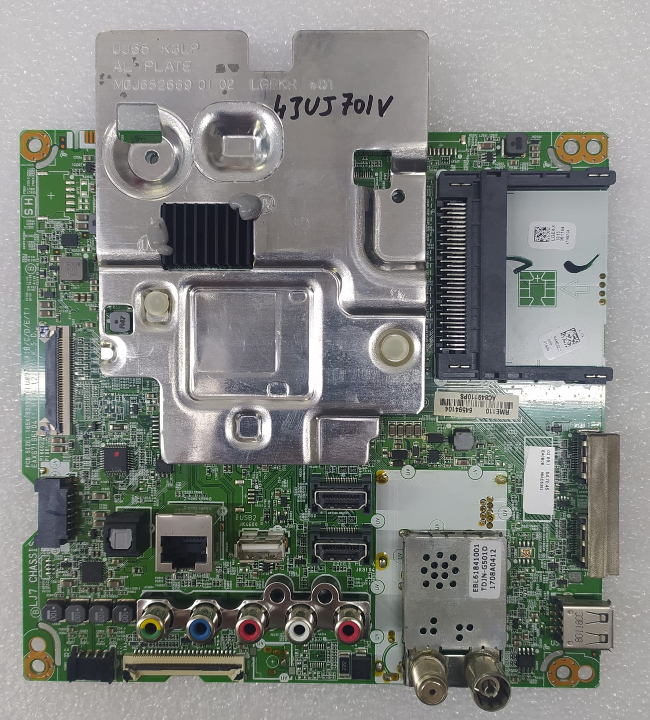Bu LG 43UJ701V anakart, televizyonun ana kontrol kartıdır.